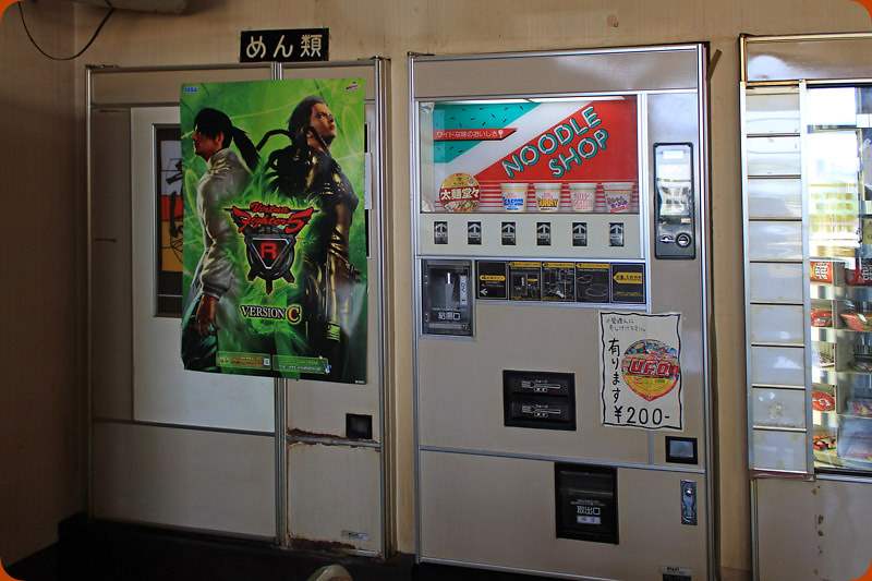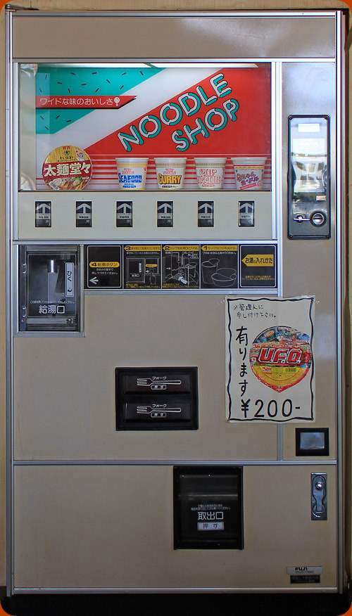 このカップ麺自販機もなかなか旧い。日清に混じって金ちゃんヌードルも。